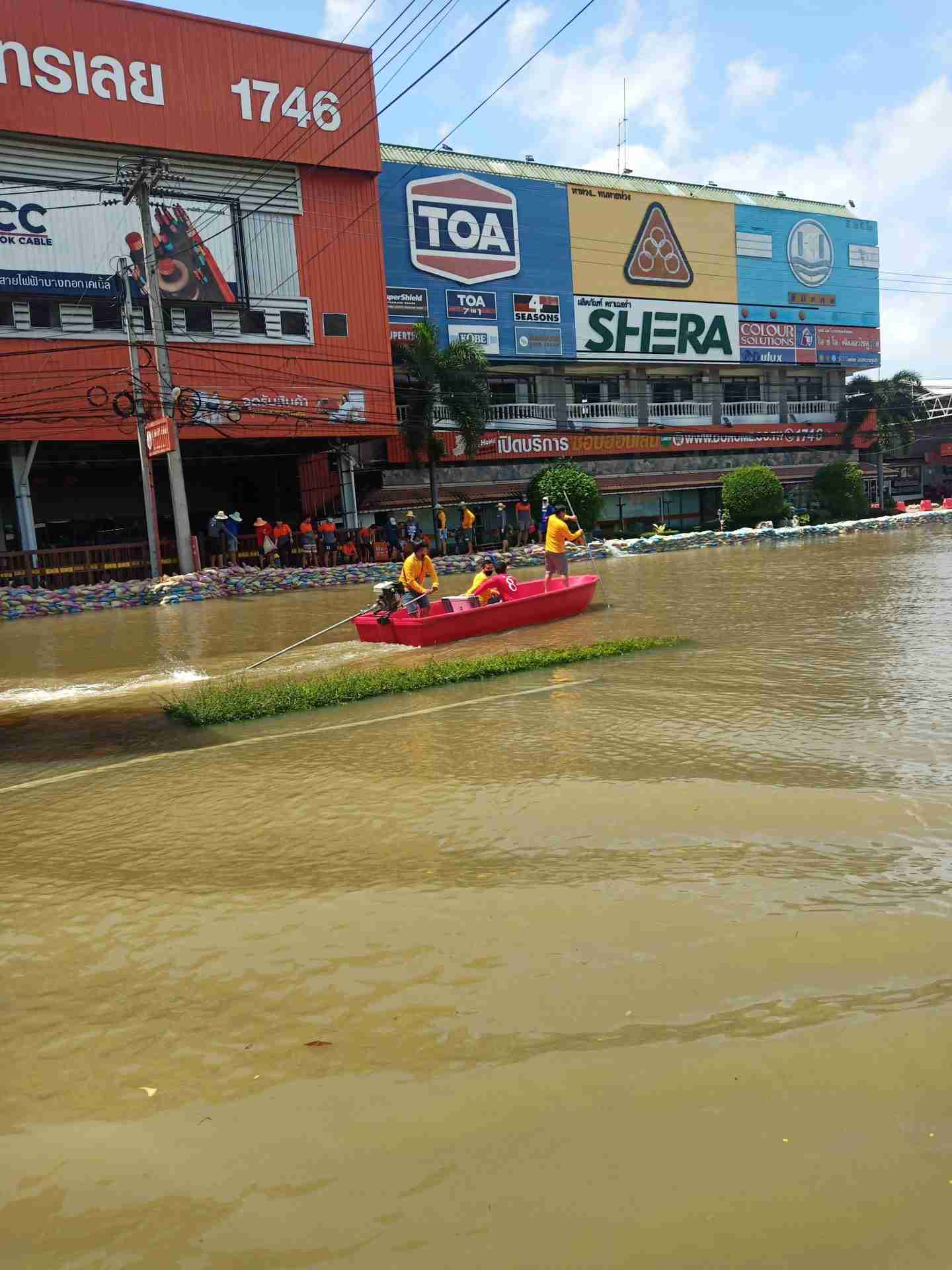 A request was made Sunday evening for support to the people of Ubon Ratchathani that are stranded and without food and water due to the flooding of the Mun River this week. The Executive Committee quickly met Monday morning and allocated 25k to the effort. Our 2nd Vice Commander offered the use of his food service facility and staff to prepare meals and 100 meals were delivered by him, me, and several other volunteers last night. The Thai Army navigated a small boat for us down the alleys near Phanom and Srinarong streets where the water was nearly 2 meters high. We delivered boxed meals to the many people stranded on the 2nd floor of their homes. Many were elderly. We made it up to a makeshift tent city at a school yard where we gave the remainder away and made our return. Since we now have an avenue for the distribution of the meals, we will continue until further notice.